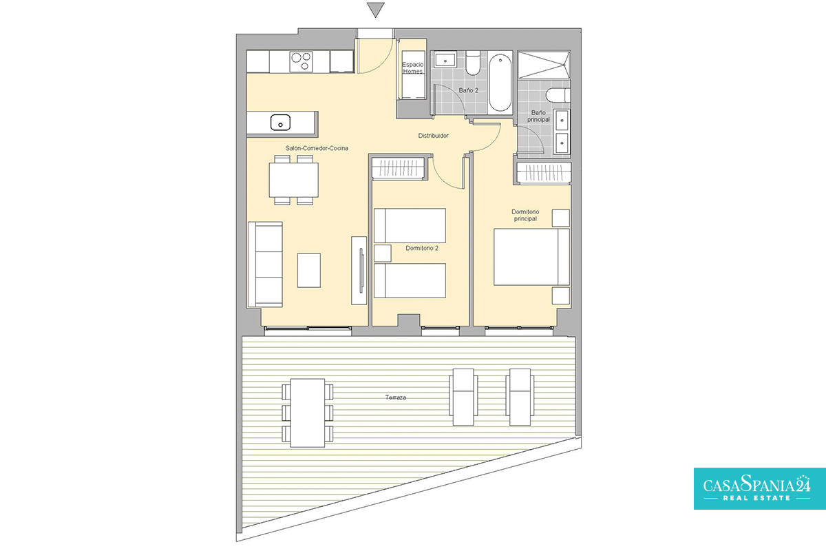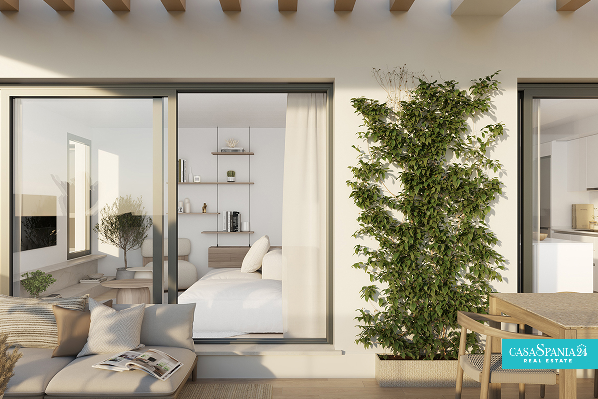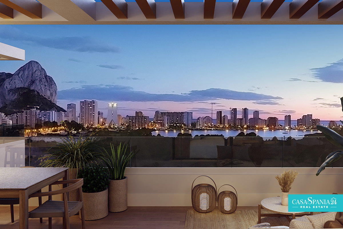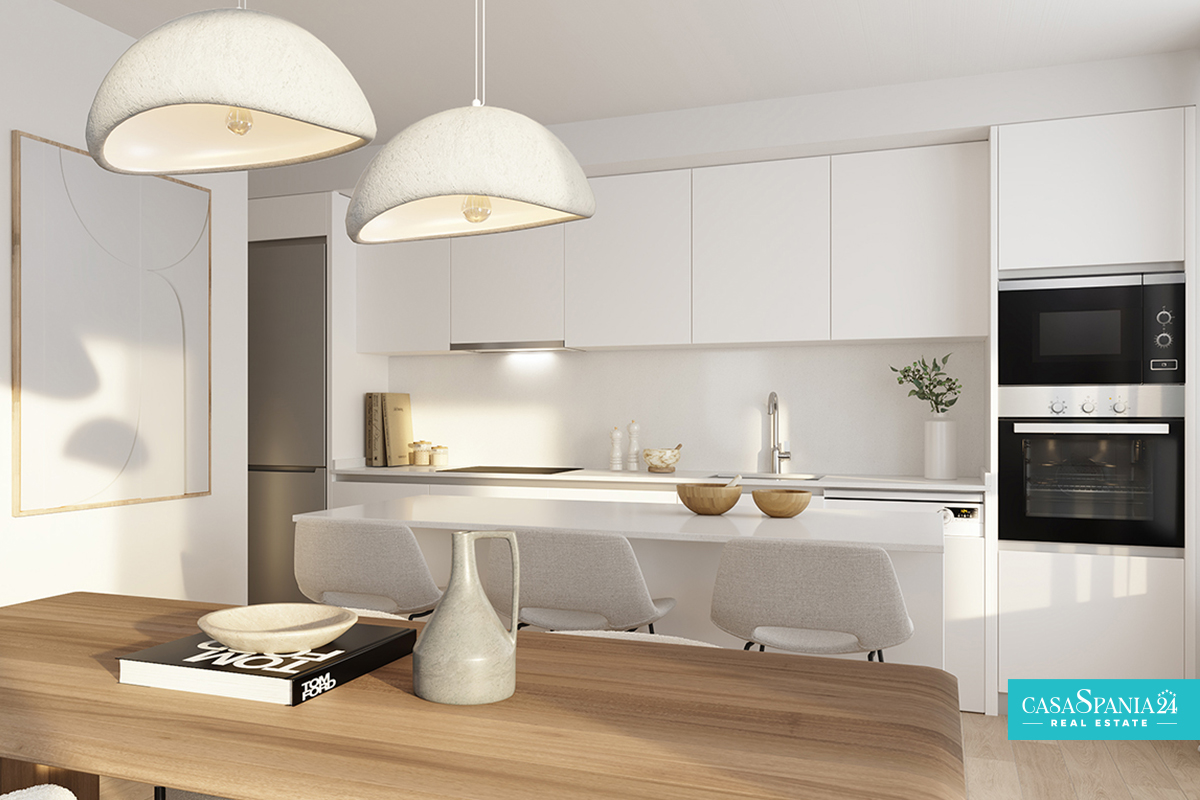Apartament elegant cu 2 dormitoare, 2 băi, living cu bucătărie open-space și terasă de 34 m², situat în Calpe.