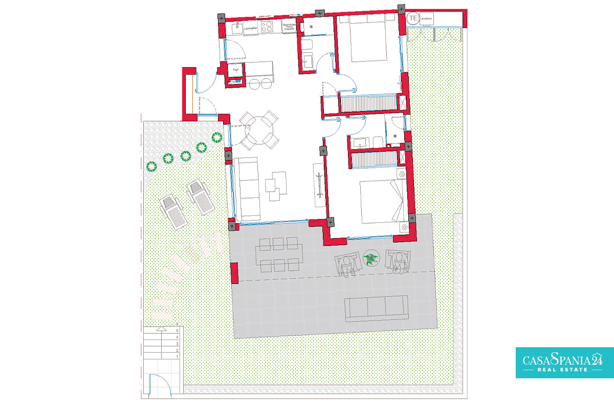 Acest apartament elegant, cu o suprafață totală de 95,47 m² (87,57 m² utili), oferă un spațiu generos și bine compartimentat. Dispune de 2 dormitoare luminoase, 2 băi moderne, un living spațios cu zonă de sufragerie, o terasă de 7,9 m² și o grădină privată de 110 m², ideale pentru relaxare și momente petrecute în aer liber. În plus, locuința beneficiază de un loc de parcare propriu.