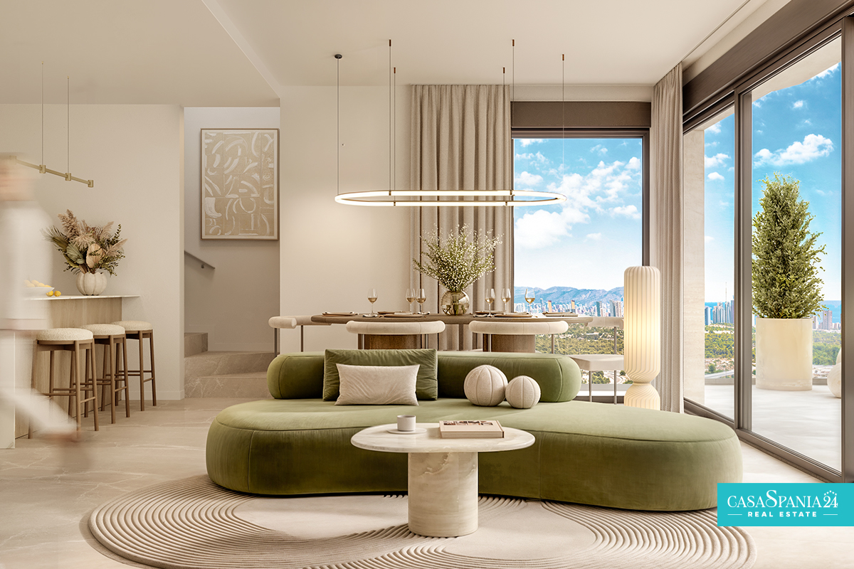Amplasarea privilegiată oferă vederi impresionante asupra orizontului orașului Benidorm și asupra mărețului munte Puig Campana. Arhitectura contemporană, abundența luminii naturale și materialele de cea mai înaltă calitate se îmbină perfect pentru a crea un ambient plin de armonie, confort și inspirație – locuința ideală pentru cei care caută rafinament și relaxare într-un cadru exclusivist.