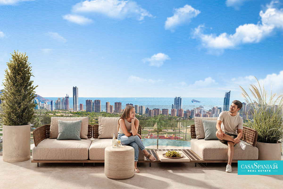 Finestrat-Benidorm este una dintre cele mai căutate destinații de pe Costa Blanca, combinând perfect farmecul tradițional al satului mediteranean cu energia și dinamismul unei stațiuni moderne. Situat între munte și mare, acest loc oferă priveliști spectaculoase asupra Muntelui Puig Campana și a golfului Benidorm, fiind totodată aproape de plajele cu nisip fin, restaurantele rafinate, terenurile de golf și centrele comerciale de lux. Climatul blând pe tot parcursul anului, infrastructura excelentă și atmosfera cosmopolită fac din Finestrat-Benidorm o destinație ideală atât pentru vacanță, cât și pentru o viață permanentă în confort și exclusivitate.
