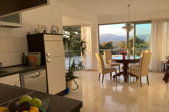 Vilă construită în februarie 2014, cu 3 dormitoare, 4 băi, sufragerie, bucătărie, lift și balcon deschis cu vedere la mare și munte. Vila are în curte o casă de oaspeți cu o cameră, un dormitor și baie.