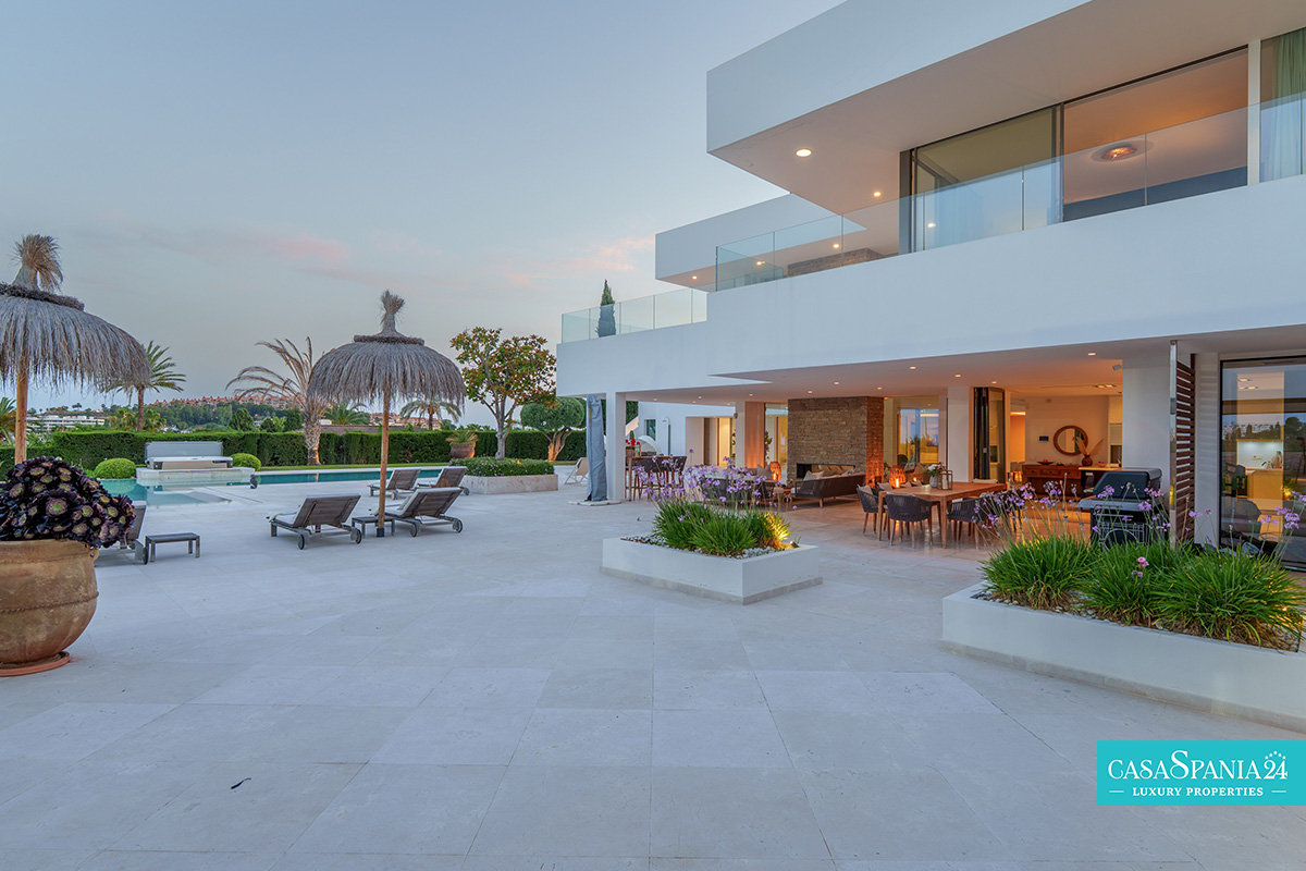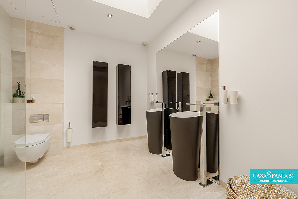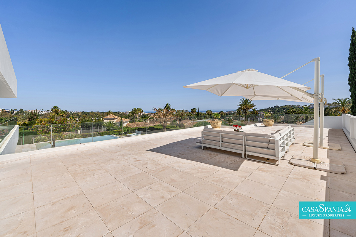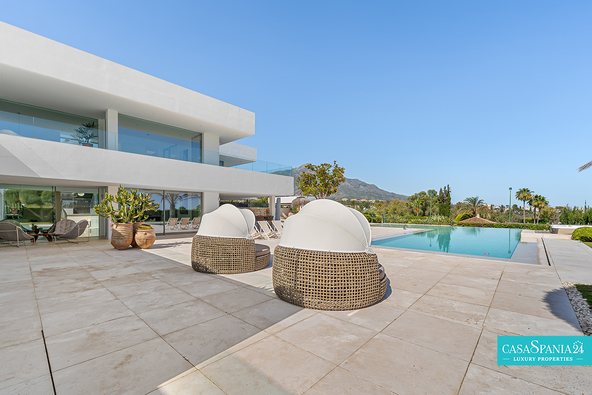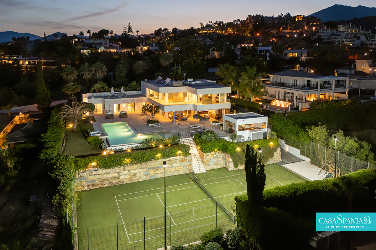Vilă modernă amplasată în exclusivistul cartier La Cerquilla, situat în inima zonei Nueva Andalucía, reprezintă o proprietate de excepție ce îmbină eleganța cu intimitatea. Reședința dispune de 7 dormitoare și este construită pe un teren generos de 2.548 m², oferind priveliști spectaculoase către muntele La Concha și către țărmurile Marea Mediterană. Poziționarea privilegiată, aproape de terenuri de golf renumite, școli internaționale, restaurante rafinate și celebrul port Puerto Banús, transformă această proprietate într-o alegere ideală atât pentru investiție, cât și pentru un stil de viață exclusivist.