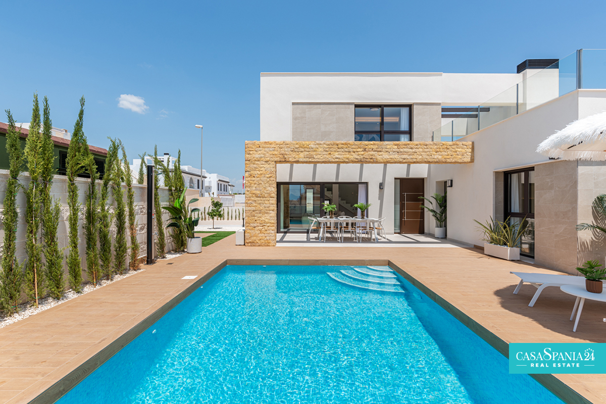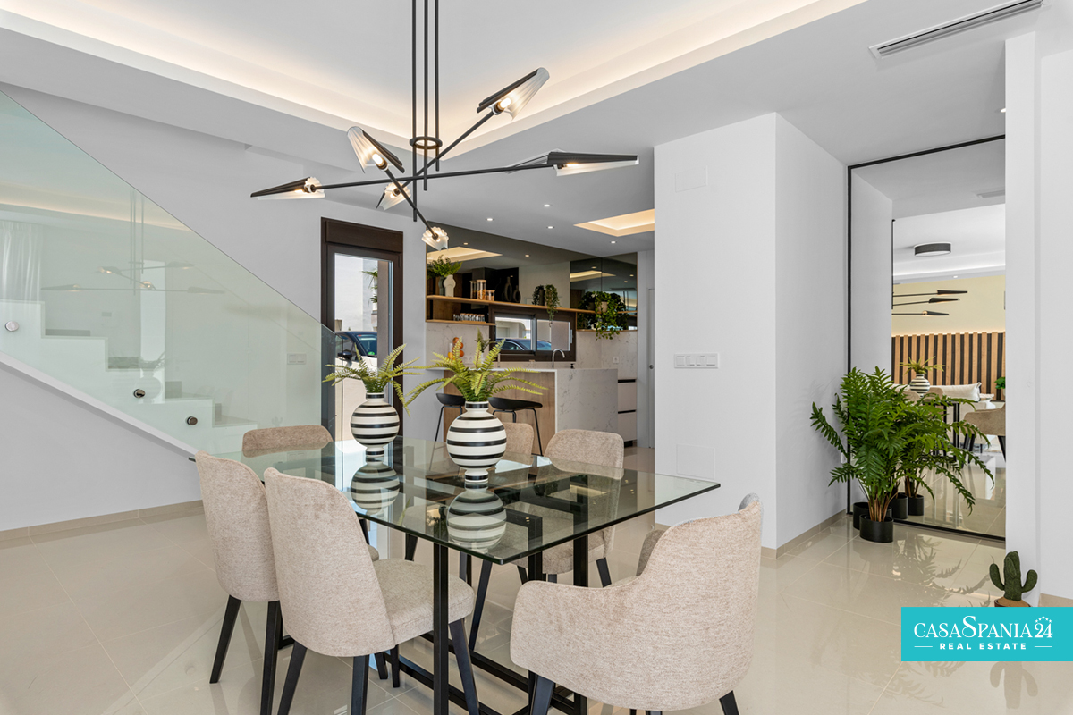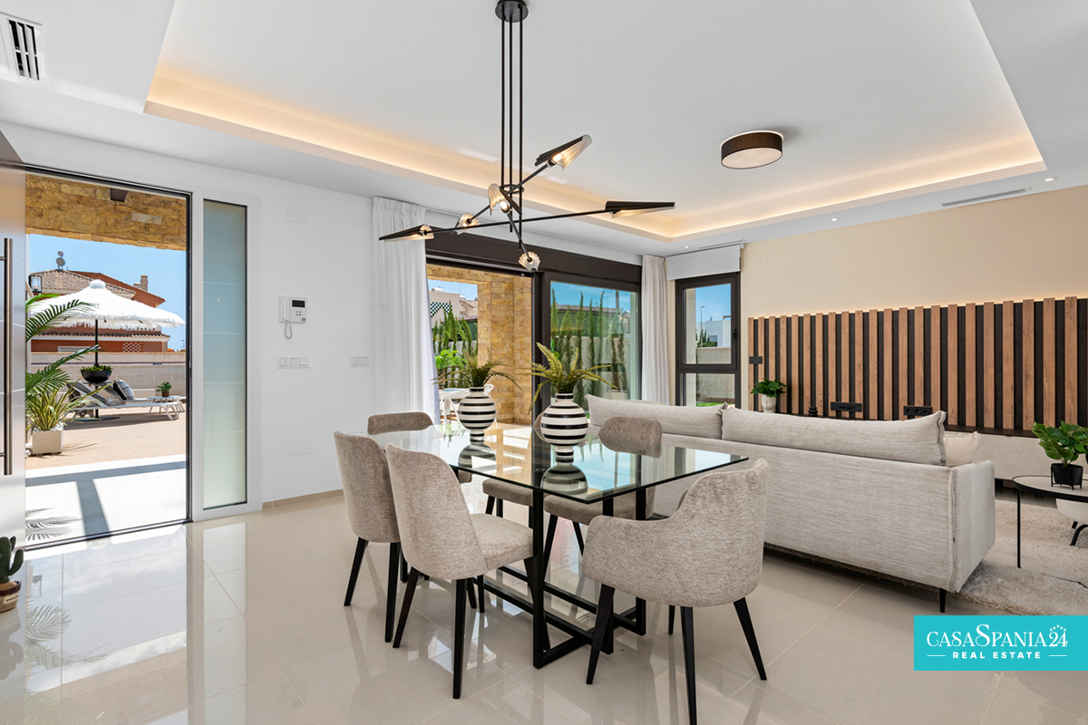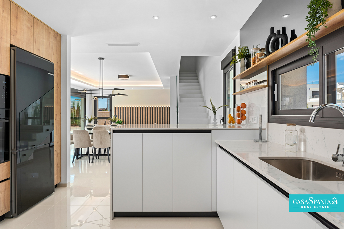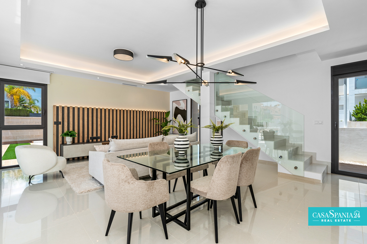 Vila este o proprietate elegantă și modernă, amplasată în inima zonei exclusiviste Ciudad Quesada, una dintre cele mai căutate destinații de pe Costa Blanca. Această reședință impresionantă combină rafinamentul arhitectural cu confortul contemporan, fiind ideală pentru cei care își doresc un stil de viață relaxat, dar sofisticat. Poziționarea sa excelentă oferă acces rapid la toate facilitățile locale și se află la doar câteva minute de aeroportul din Alicante.