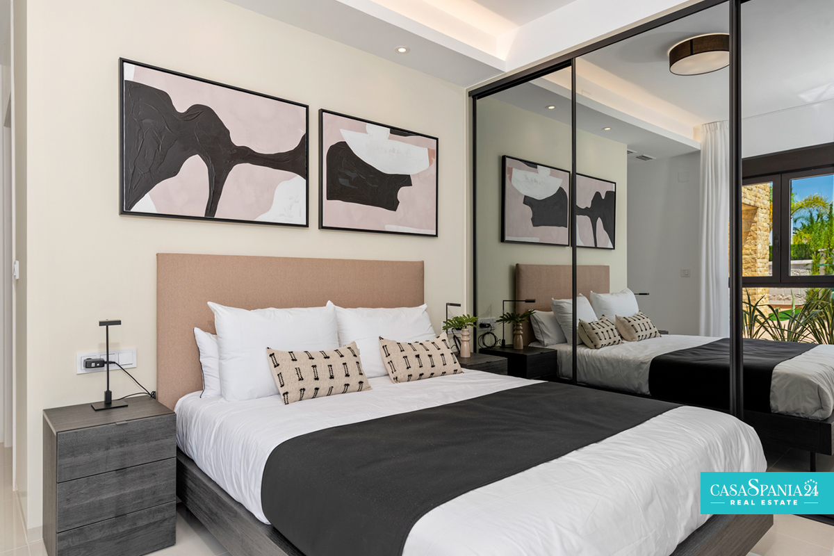 Vila Allegra beneficiază de o locație privilegiată: se află la doar 5 minute de terenul de golf și de centrul de sănătate, la 8 minute de plajă și la aproximativ 35 de minute de aeroportul din Alicante. Zonele comerciale și de agrement sunt la doar câteva minute distanță, oferind tot ce aveți nevoie pentru un trai confortabil, liniștit și plin de rafinament.